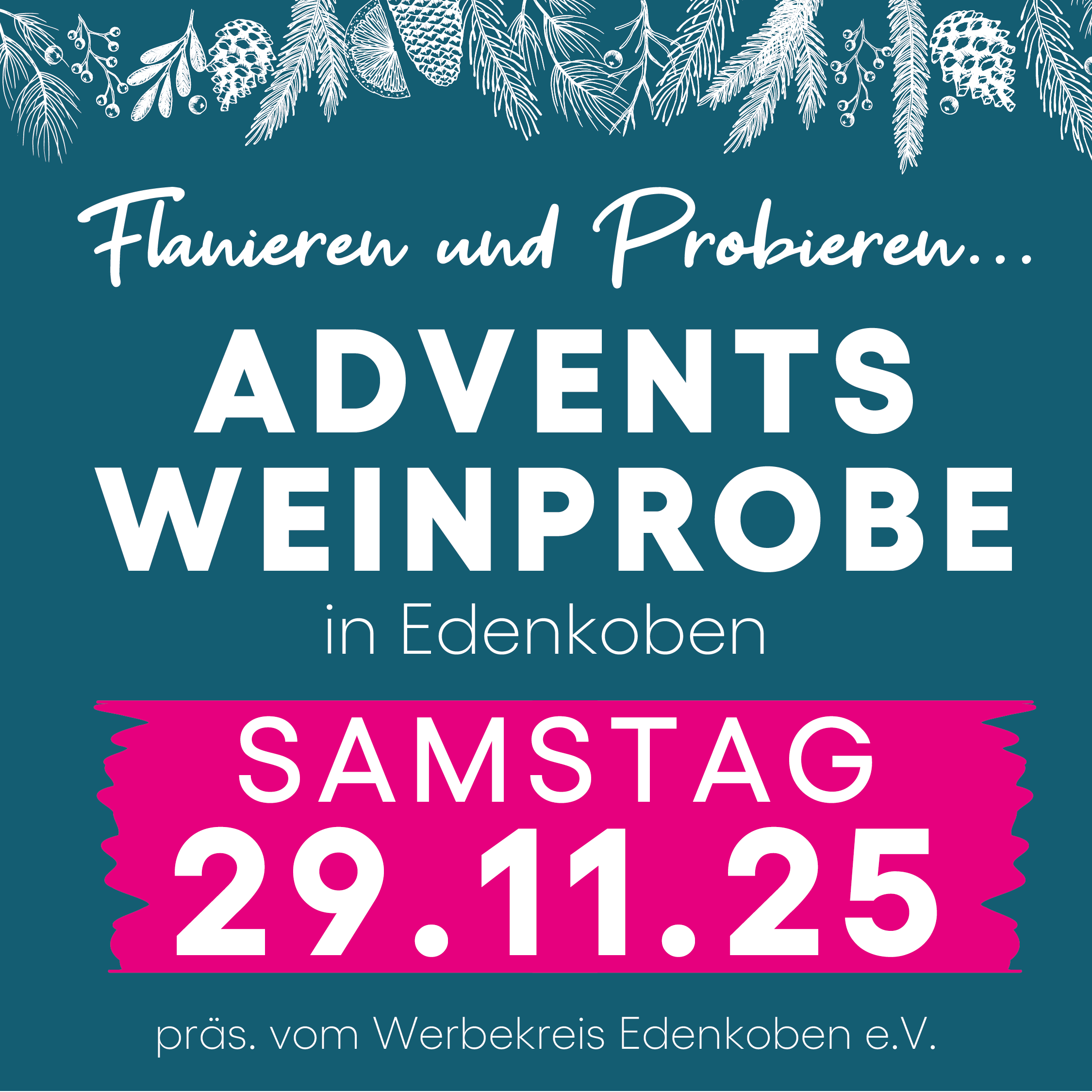 Flanieren & Probieren 2025 Verkaufsoffener Sonntag am Stadtfest 2025 Flanieren & Probieren, Adventsweinprobe in Edenkoben 29.11.2024 IHK Shoppen 13. & 14.09.2024 Verkaufsoffener Sonntag 25.08.24 Maibaumstellen 1.5.2024